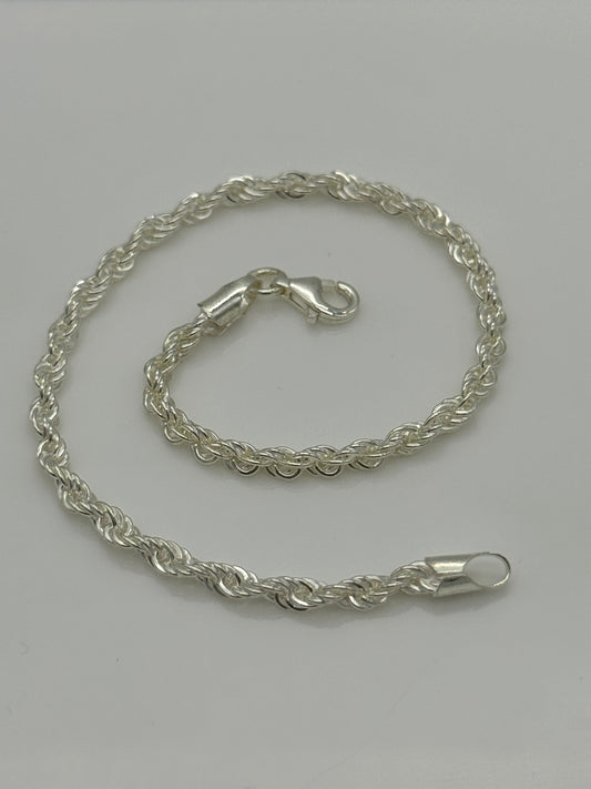 925 Sterling Silver 3mm Rope Bracelet 8 INCH