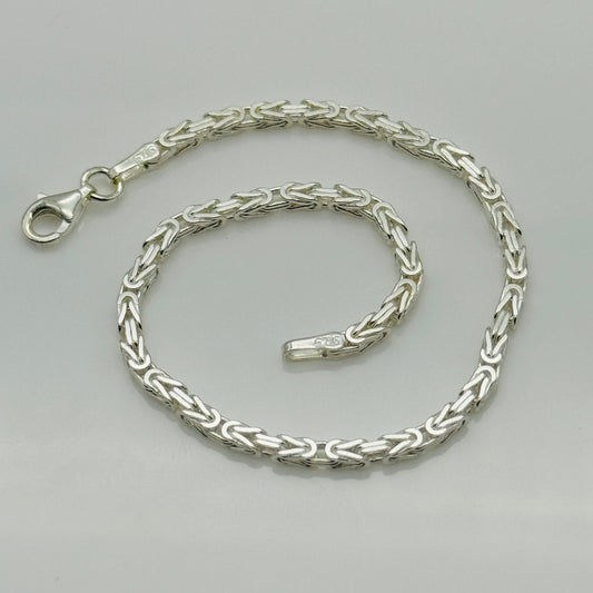925 Sterling Silver 3mm Square Byzantine Bracelet 8 INCH