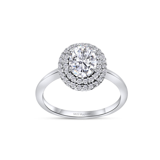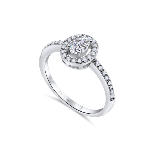 925 Sterling Silver Oval Diamond Halo Engagement Ring