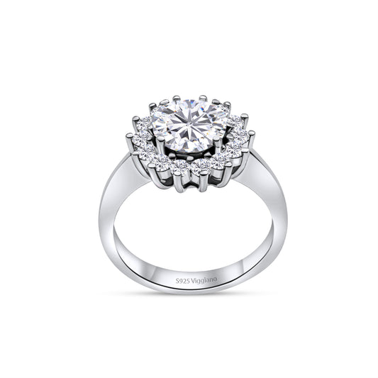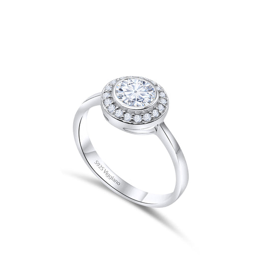 925 Sterling Silver Round Diamond Halo Engagement Ring