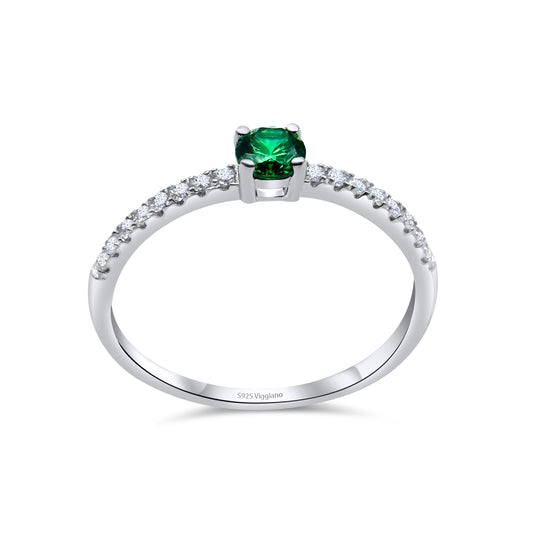 925 Sterling Silver 3mm Emerald Solitaire Engagement Ring
