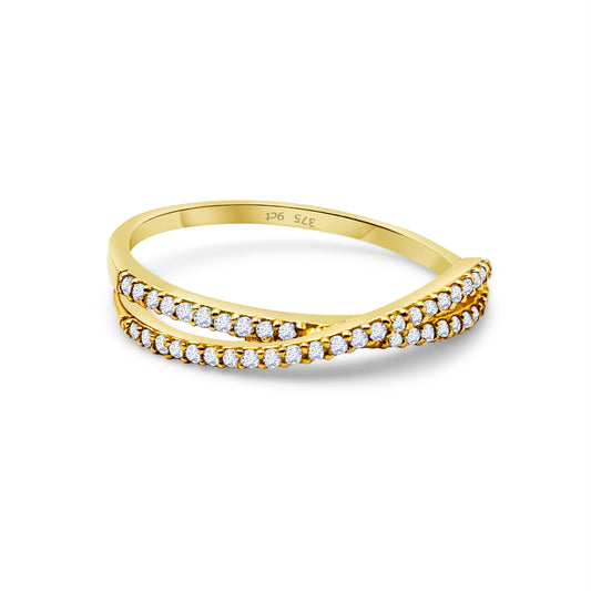9ct Yellow Gold Crossover Diamond Eternity Ring