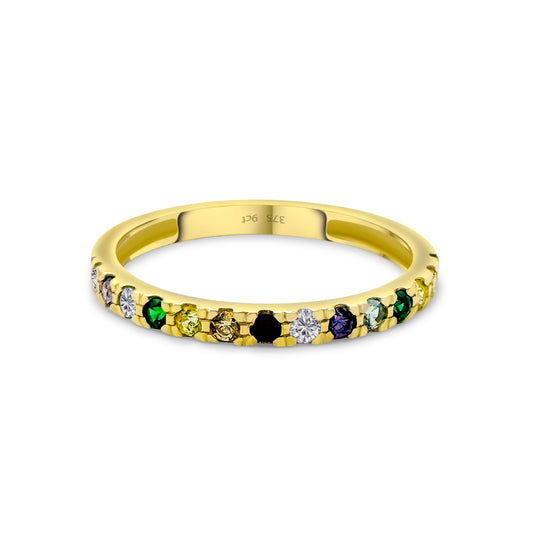 9ct Yellow Gold 2mm Multicolor Diamond Ring