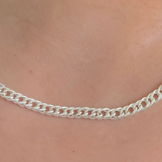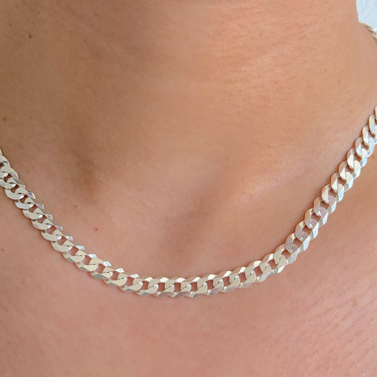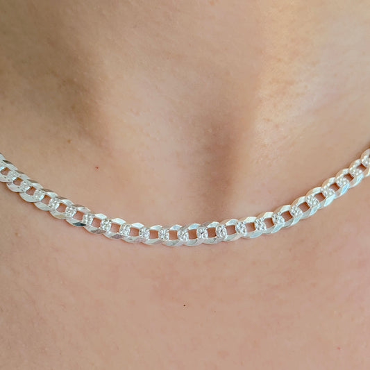 925 Sterling Silver Women 5mm Pave Curb Chain