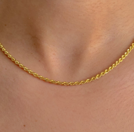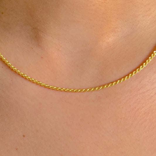 9ct Yellow Gold 2mm Solid Twisted Rope Chain