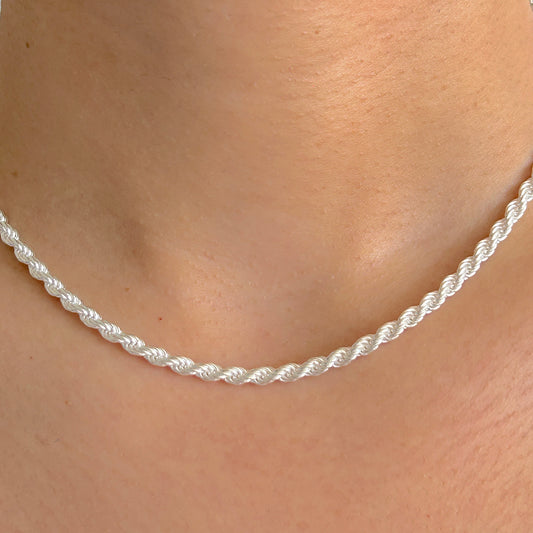 925 Sterling Silver Women 3mm Twisted Rope Chain