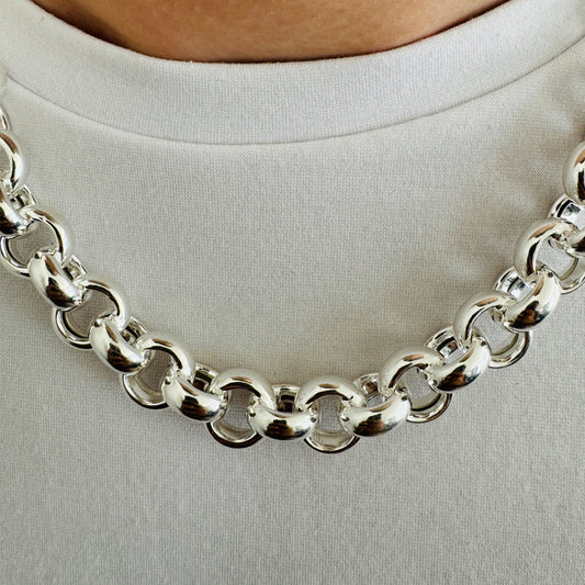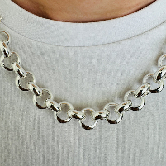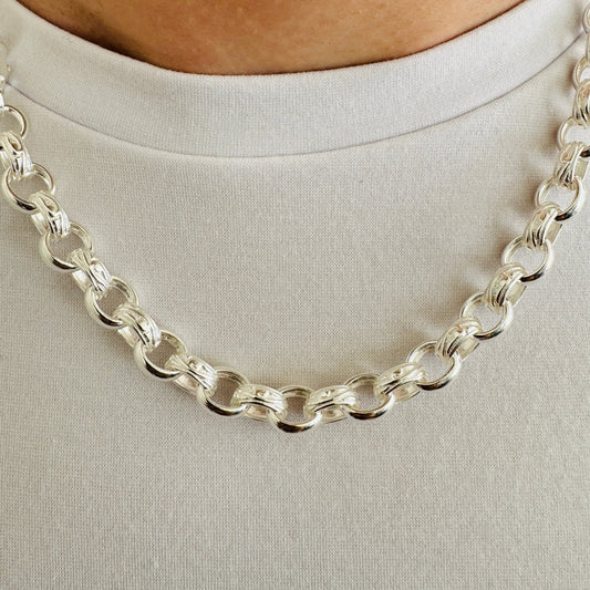 925 Sterling Silver 14mm Round Rolo Belcher Chain