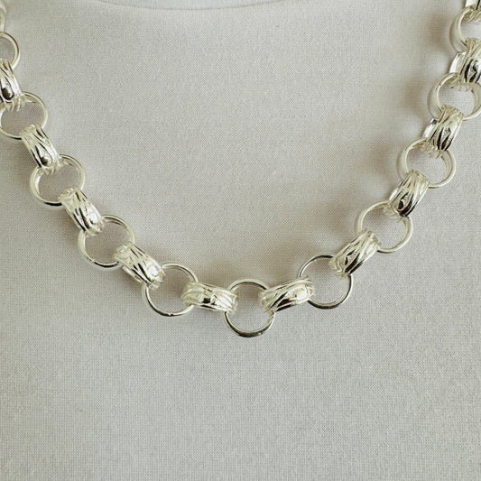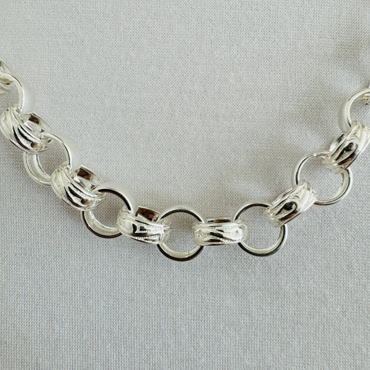 925 Sterling Silver 12mm Oval Engraved Belcher Chain