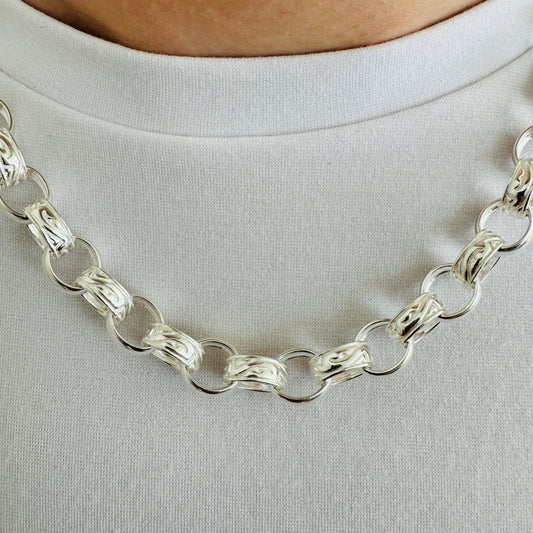 925 Sterling Silver 14mm Round Engraved Belcher Chain