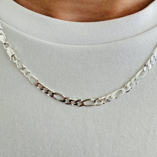 925 Sterling Silver Mens 4.5mm Figaro Chain