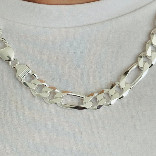 925 Sterling Silver Mens 12mm Figaro Heavy Chain 20 INCH