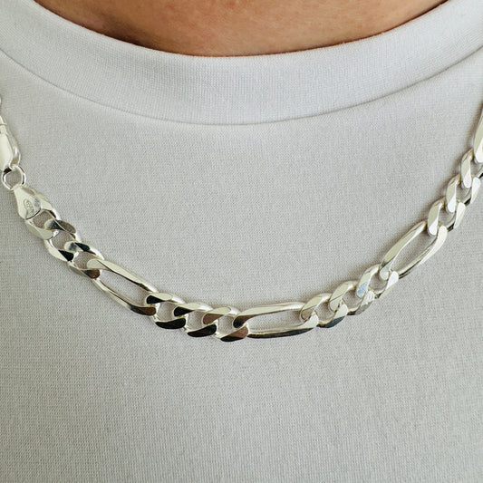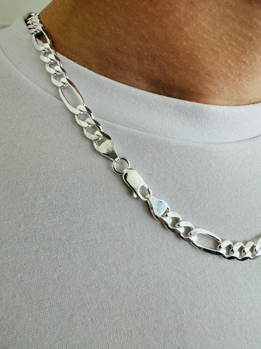 925 Sterling Silver Men 7.5mm Figaro Heavy Chain