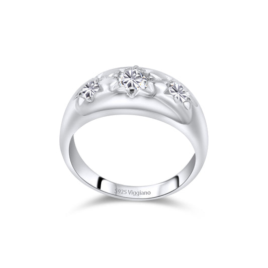 925 Sterling Silver Mens Three Stone Diamond Irish Gypsy Ring