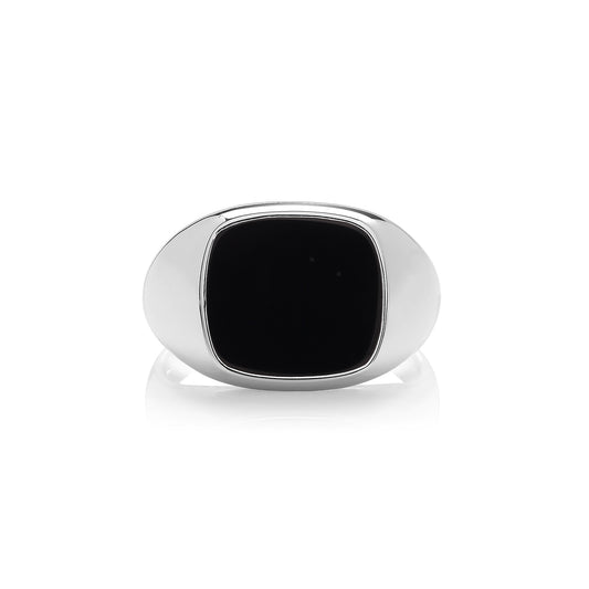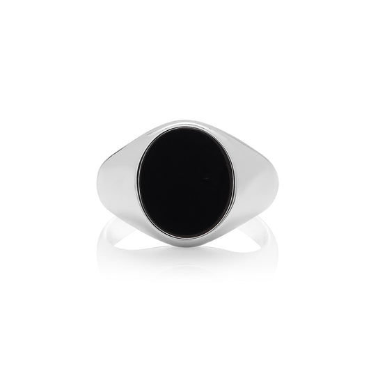 925 Sterling Silver Gent's Oval Black Onyx Signet Ring