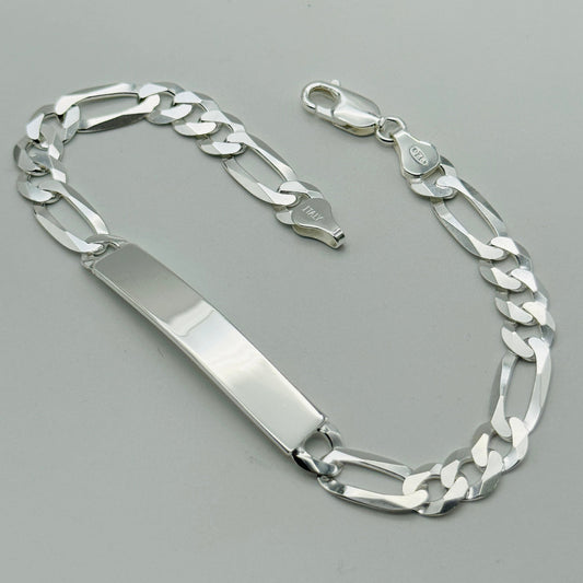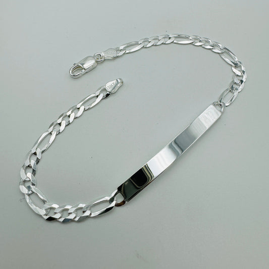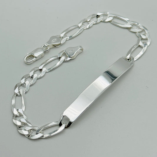 925 Sterling Silver 7mm Figaro ID Bracelet 8 Inch