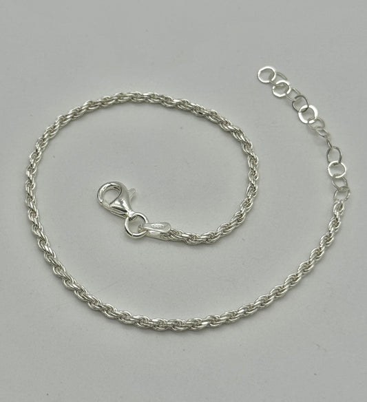 925 Sterling Silver 2mm Rope Bracelet 8 INCH
