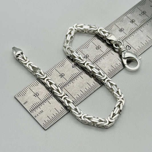 925 Sterling Silver 4.5mm Square Byzantine Bracelet 8 INCH