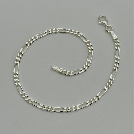 925 Sterling Silver 3mm Figaro Bracelet 8 INCH