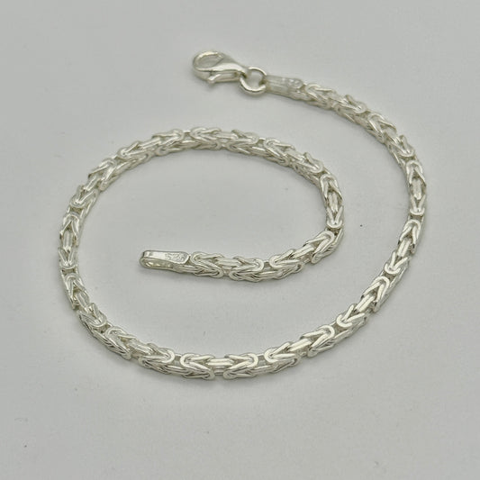 925 Sterling Silver 3.5mm Square Byzantine Bracelet 8 INCH