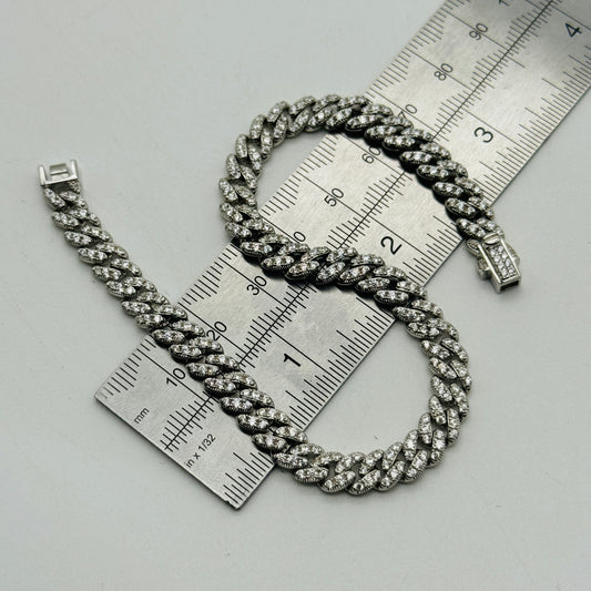 925 Sterling Silver Diamond 6mm Miami Cuban Bracelet 7.5" - 8.5"