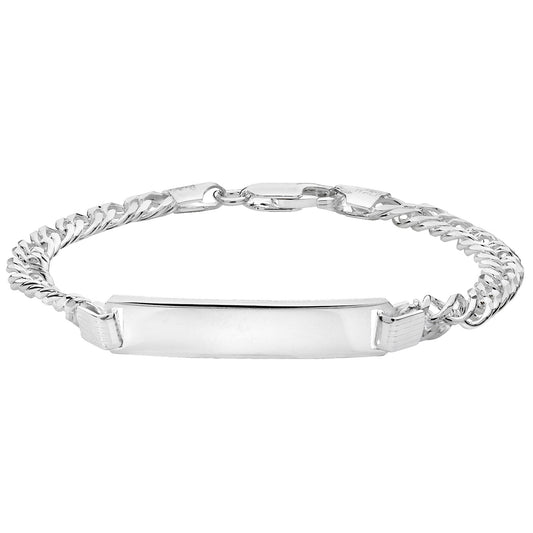 925 Sterling Silver Ladies Double Curb ID Bracelet