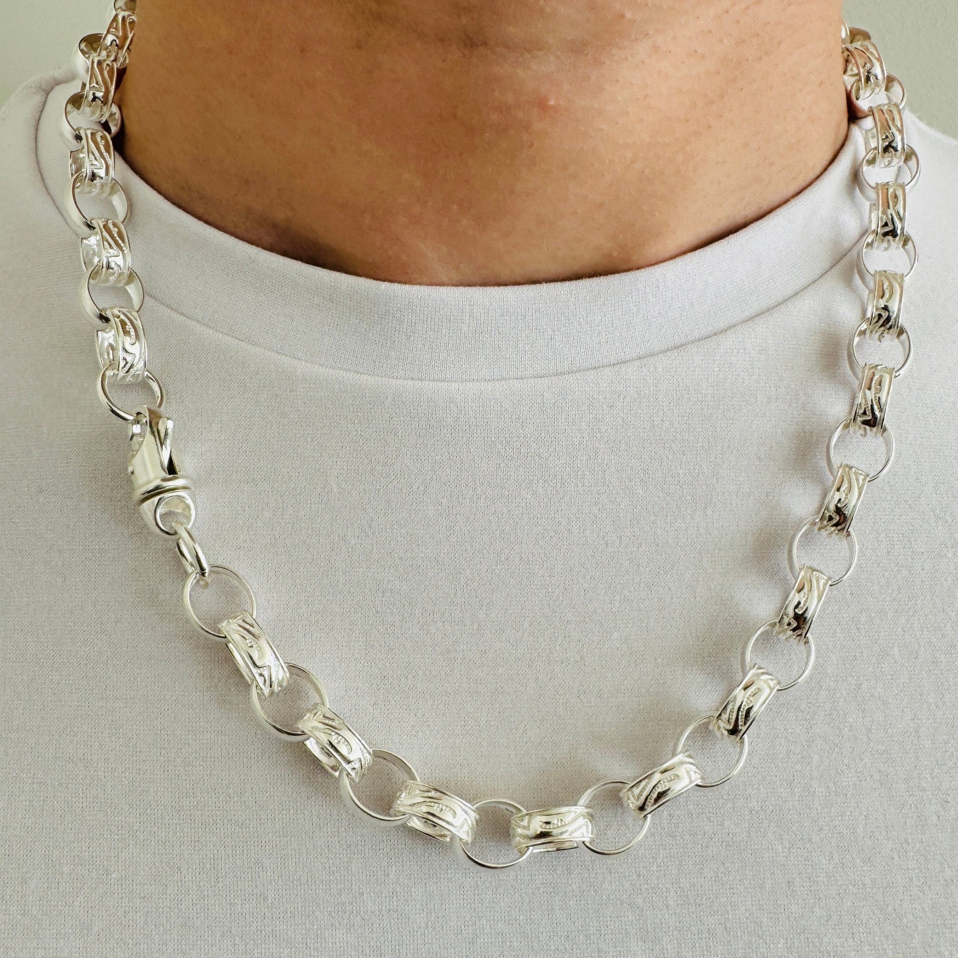 925 Sterling Silver 12mm Oval Engraved Belcher Chain