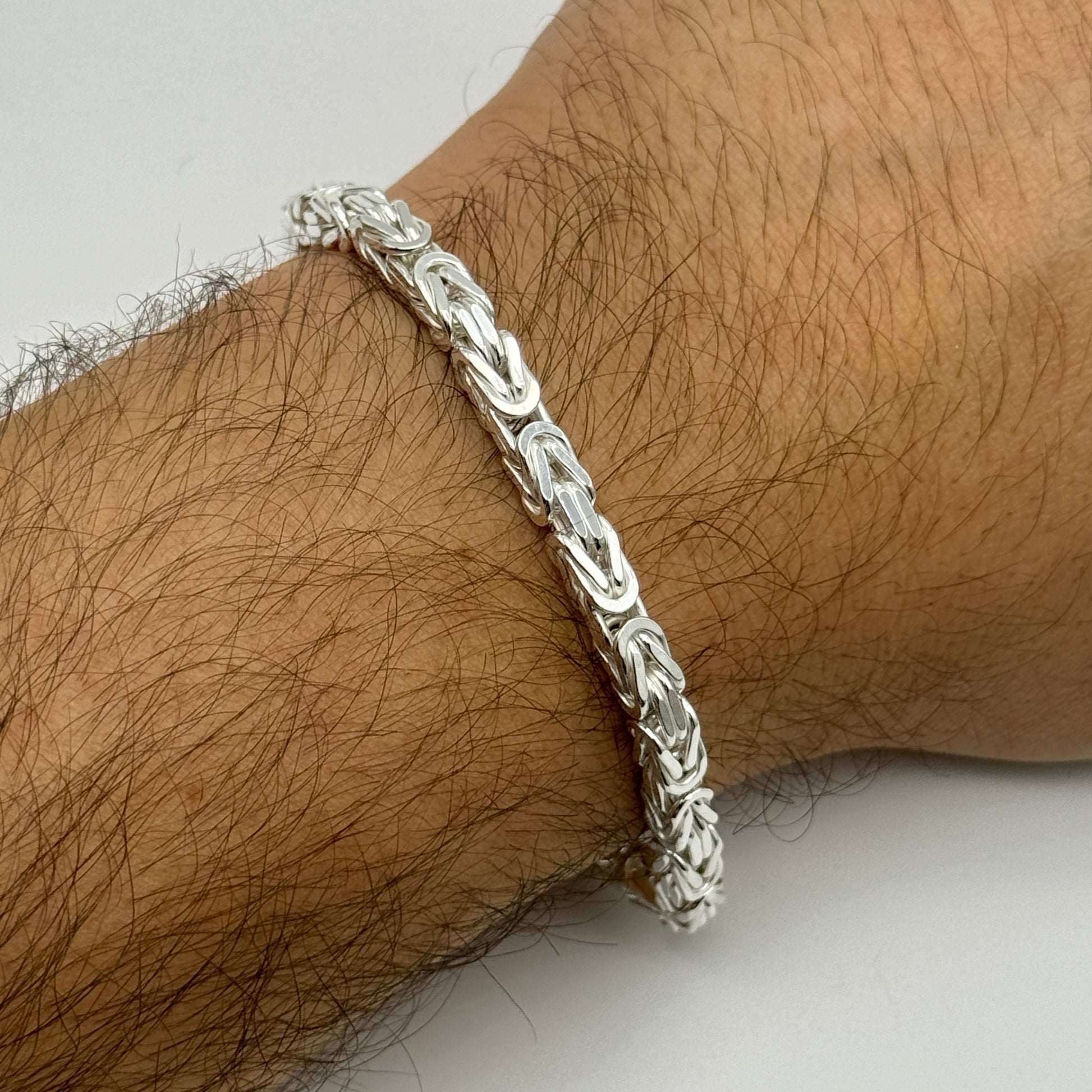 925 Sterling Silver 4.5mm Square Byzantine Bracelet 8 INCH