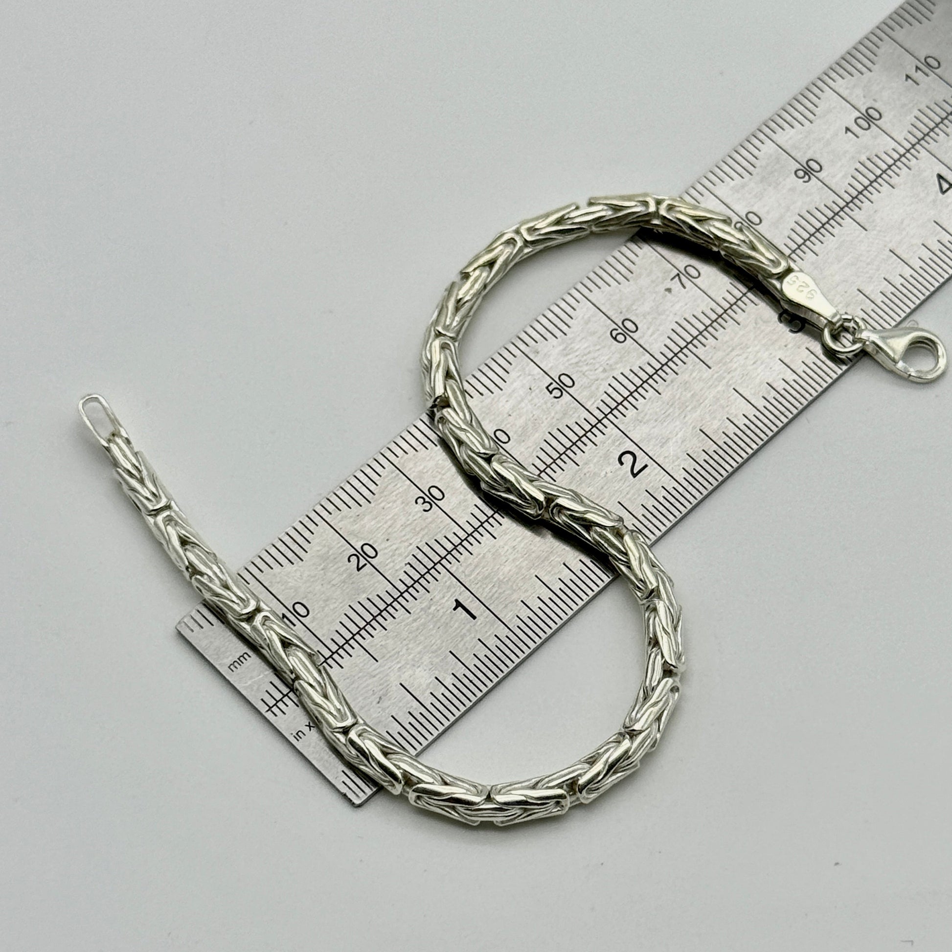 925 Sterling Silver 4mm Round Byzantine Bracelet 8.5 INCH
