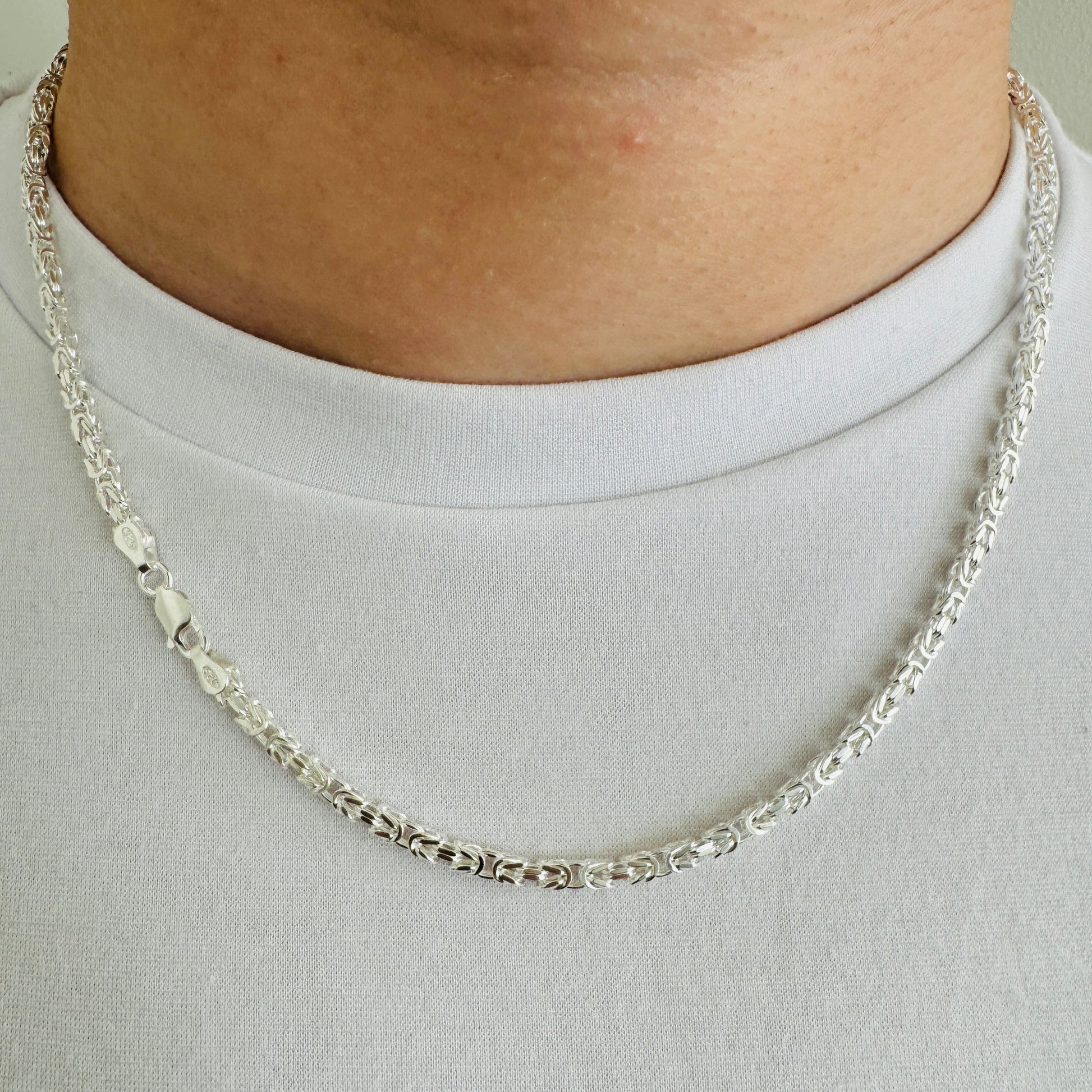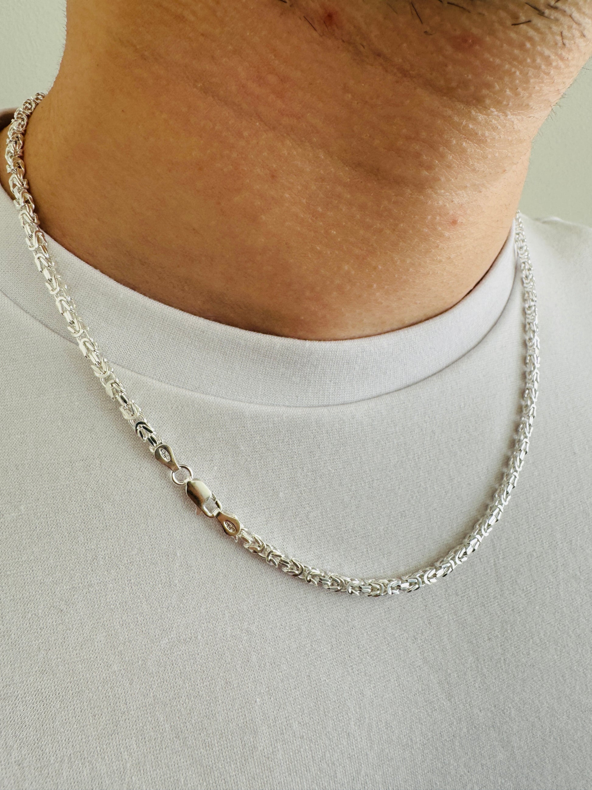 925 Sterling Silver Men 3mm Square Byzantine Chain