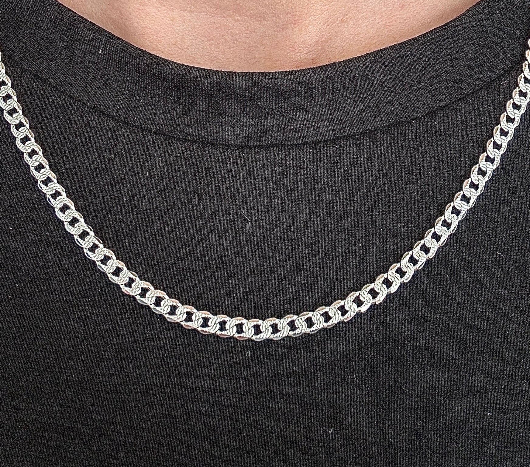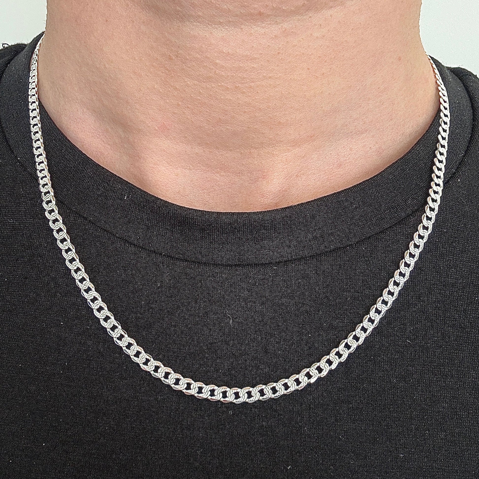 925 Sterling Silver Mens 3.5mm Pave Curb Chain