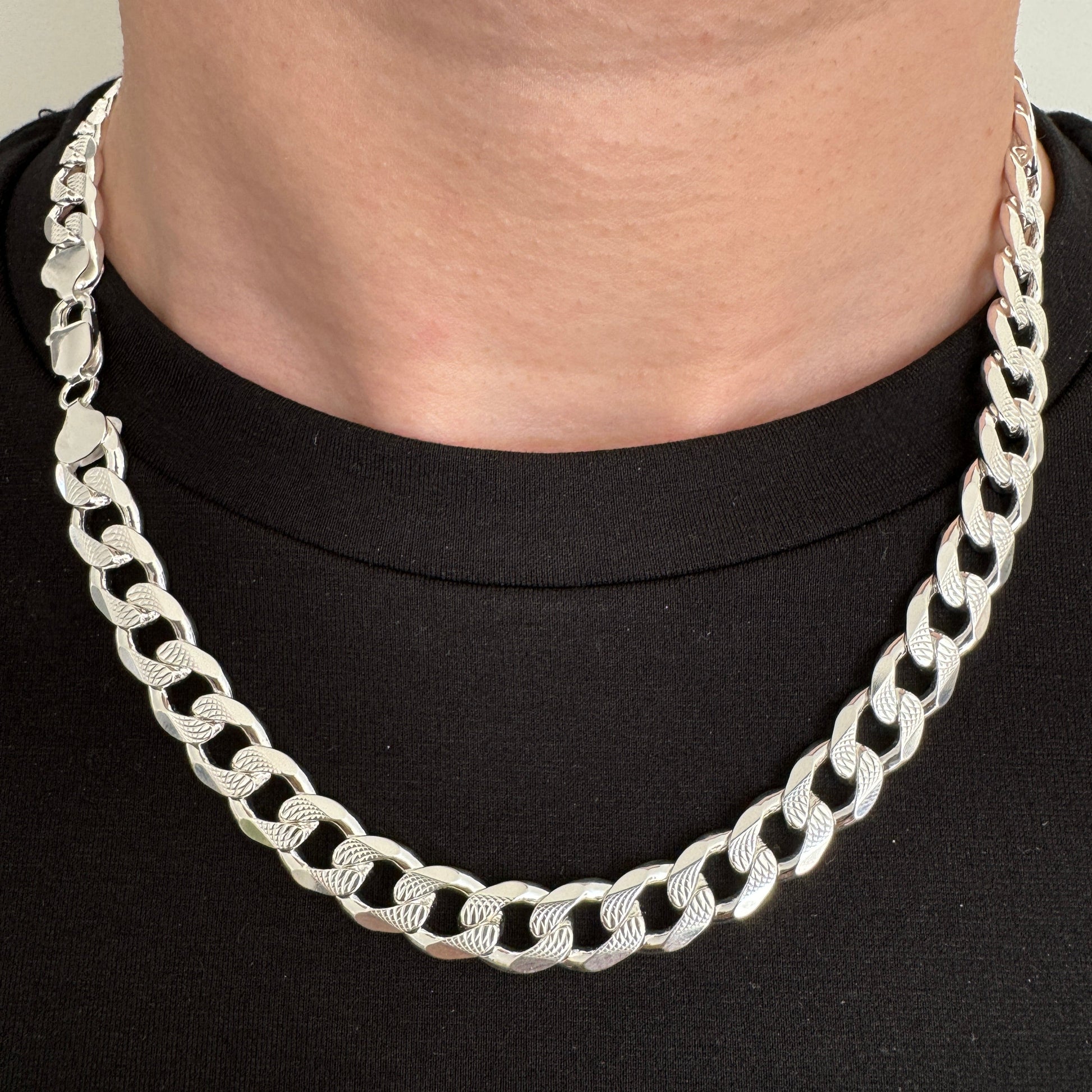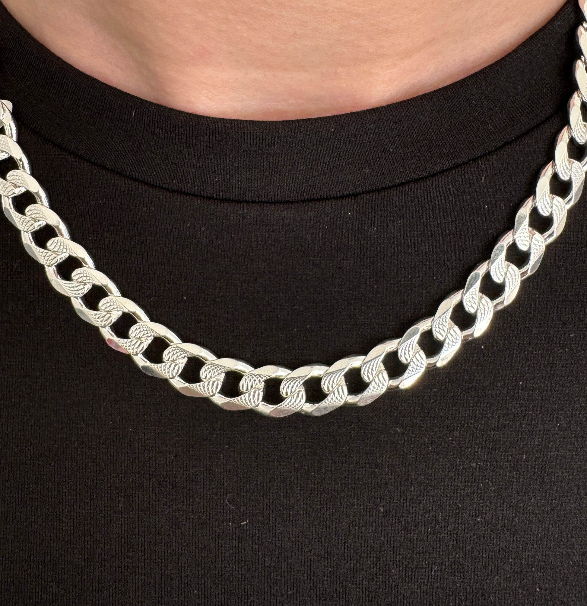 925 Sterling Silver Mens 7.5mm Pave Curb Chain